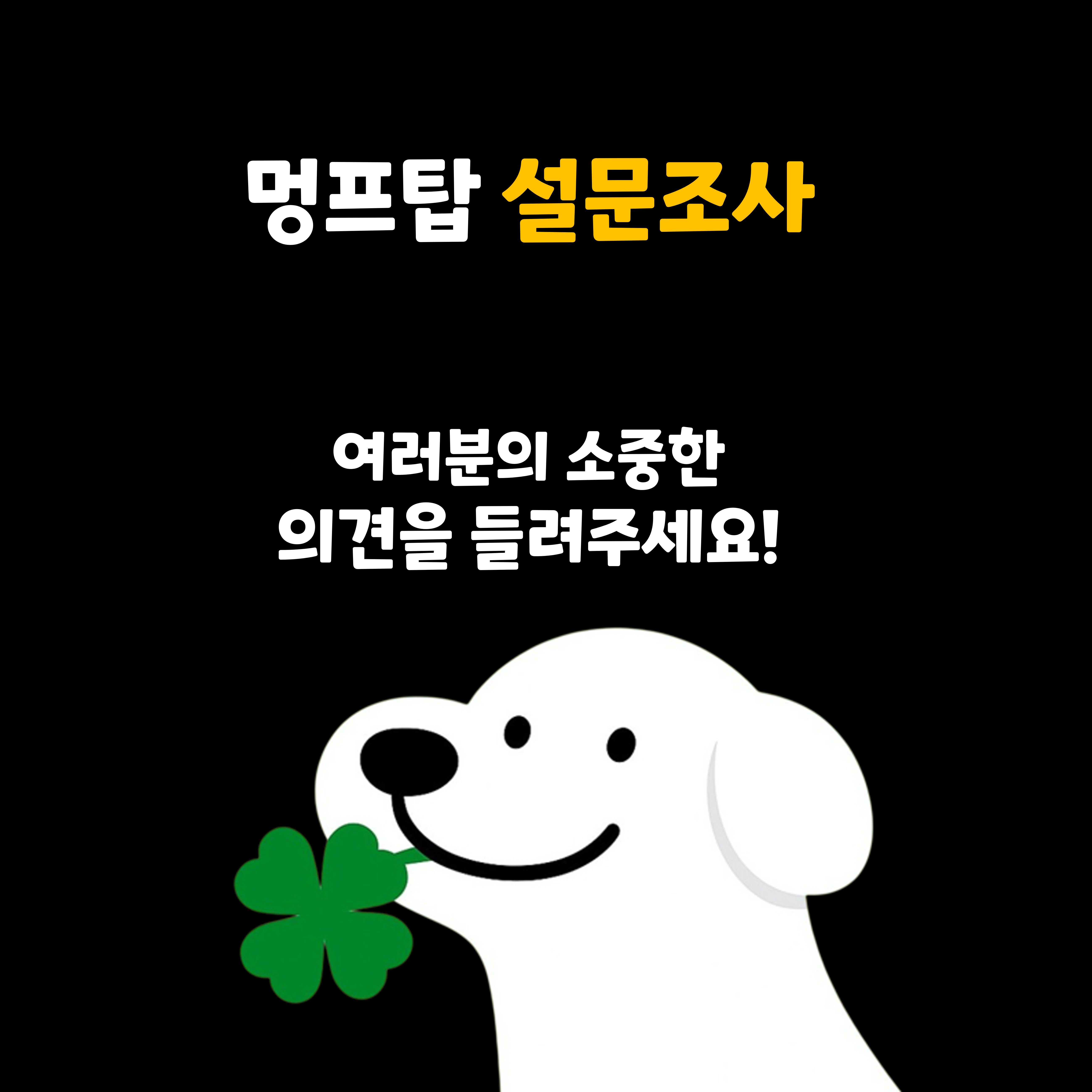 ❤️혹시 기간내 방문이 어려우시나, 저희를 응원하는 마음으로 설문을 해주실 분께서는 인스타 프로필의 링크로 접속하시거나 mungftop.com 으로 방문하시면 설문에 참여하실 수 있습니다.(정말 감사합니다)