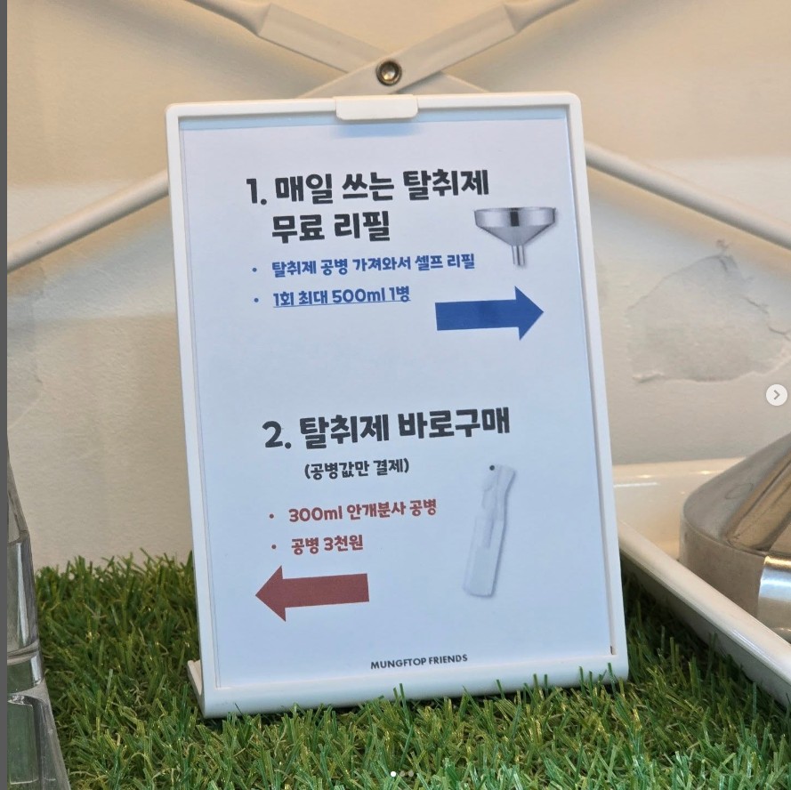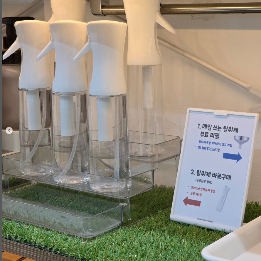 편집샵 내에서 탈취제를 무료로 리필해가실 수 있습니다.